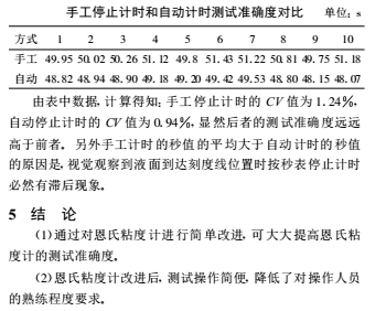 恩氏粘度計(jì)采用人工卡秒表的方式計(jì)時(shí), 這樣就存在人為的操作誤差。 另外, 操作人員需用肉眼監(jiān)視量瓶中流入漿液的液面是否到達(dá)刻度線位置, 以停止秒表計(jì)時(shí) , 這也勢(shì)必存在著視覺誤差。 操作誤差和視覺誤差必然導(dǎo)致其測(cè)試準(zhǔn)確度低。為盡量減小這些誤差, 操作人員需經(jīng)過長(zhǎng)期訓(xùn)練, 而且**好能長(zhǎng)期固定檢驗(yàn)人員, 不同檢驗(yàn)人員測(cè)得的數(shù)據(jù)的可比性較差。3 提高恩氏粘度計(jì)測(cè)試準(zhǔn)確度的措施