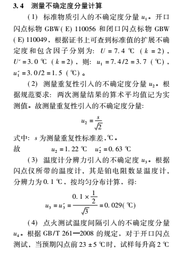 通過評定可得,開口 / 閉口閃點測定儀的不確定度主要來源于標準物質、重復性測量及點火測溫間隔引入的不確定度,溫度計顯示和大氣壓修正引入的標準不確定度較小。